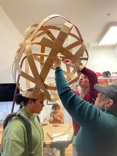 We lead 1-day and 2-day intensive master-classes to help teaching artists bring new ways of building procession to their classrooms and communities. We can address broad design and organizational strategies, or delve into detailed hands-on instruction in specific techniques, covering topics that include pageant puppetry, illuminated forms, ceremonial architecture, mask-making and sound. We can also guide community organizers in best practices for activating public space, including volunteer coordination, route design, choreography, and communication strategies.